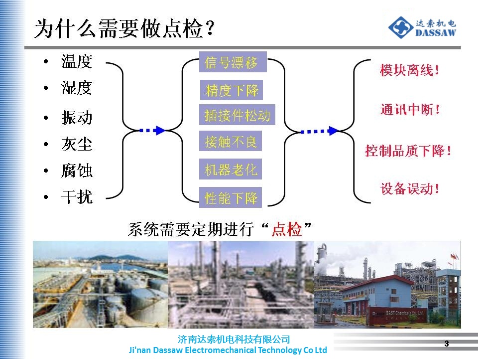 點檢服務(wù)是預(yù)防性的服務(wù)項目。它通過對現(xiàn)場運行環(huán)境及系統(tǒng)整體運行狀況進行的測量,分析,查找系統(tǒng)萌芽狀態(tài)中的隱患。并通過消除潛在隱患,保證DCS系統(tǒng)長期、安全、穩(wěn)定運行。